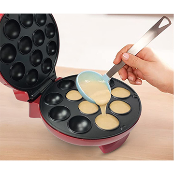 ماكينة صنع الكيك الكهربائية - تمنحك ماكينة صنع الكعك هذه كميات صغيرة من الكيك في غضون دقائق. تتيح الفتحات الـ 12 للكيك تجربة نكهات مختلفة دفعة واحدة. موفرة للوقت وخالية من المتاعب سهل الاستخدام - فقط ضع خليط الكيك في قالب الكعك، وأغلق الغطاء وقم بتوصيل الجهاز. ستكون كعكتك اللذيذة والمستديرة والزغبية جاهزة في غضون دقائق. تنبيه مؤشر الضوء للتشغيل والجاهز يلغي الحاجة إلى مشاهدة الكيك باستمرار. قالب غير لاصق - تحتوي ماكينة صنع الكيك على 12 فتحة لخبز كعكة صغيرة مستديرة بشكل مثالي. يزيل لوح الخبز المطلي غير اللاصق متاعب التشحيم ويتم تنظيفه في نفحة. البناء والتصميم: يتميز قالب صنع الكعك هذا بغطاء ذو ملمس بارد مما يجعله مريحًا في التعامل ومنع الحروق الطفيفة. مصنوع من منظم حراري للتحكم في درجة الحرارة للطهي المتساوي.